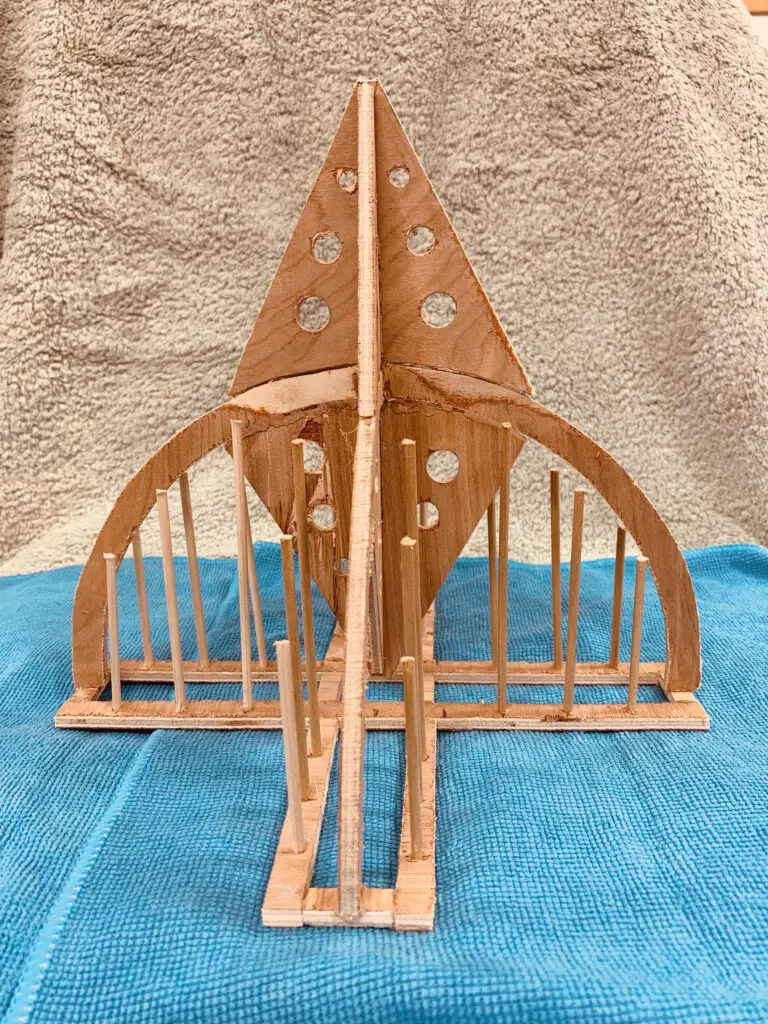 Bridges That Connect Us is currently a wooden maquette for a larger piece. I have submitted this and 2 other maquette to be considered for an outdoor sculpture show in Rhode Island in 2020. If this piece is selected it will be created on a scale of 8 feet in every dimension. The materials will be cedar and steel. The theme for this show is artwork for the community. Our island has two bridges which we have to cross either to the mainland or to Newport. Islands and bridges are a fact of life in Rhode Island and bridges make a nice metaphor for human connection. Art also connects people in ways that other aspects of life don’t. Art can actually be a bridge for connecting people of diverse backgrounds and experiences.