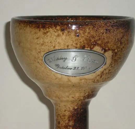 In 2010 as my son, Ryan was planning for his October wedding; he asked if I would make them a unique ceramic communion cup for their ceremony. I was delighted to be asked and to say yes. I actually made four of them so they could have a choice of colors. They went for the rust color that was also my favorite. These were thrown on a potters wheel and glazed in the kiln in my studio.