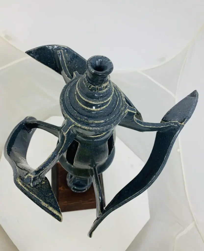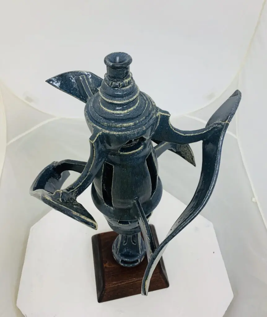 The inspiration for this piece came from the Starship “Avalon” from the movie Passengers. This is not a copy, but I really wanted to create something similar only in ceramics as opposed to a digitally printed form. This piece was very difficult to get to the final stages without breaking, serious cracking, or other problems inherent to ceramics. It was made during the months of 2020 when the entire country was on lock down from the Corona 19 Virus.